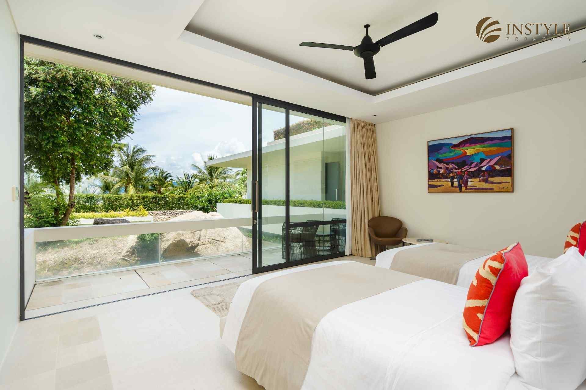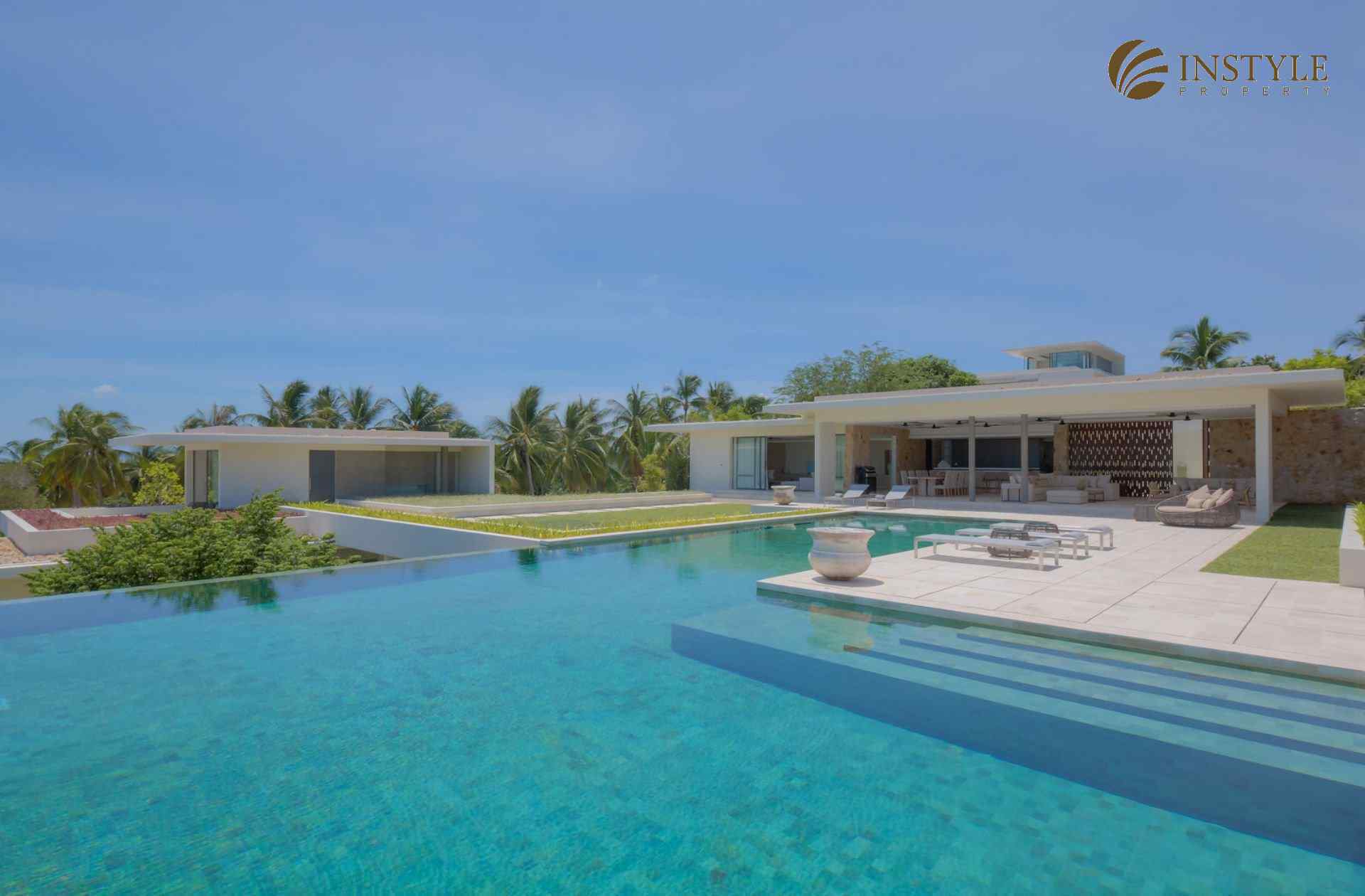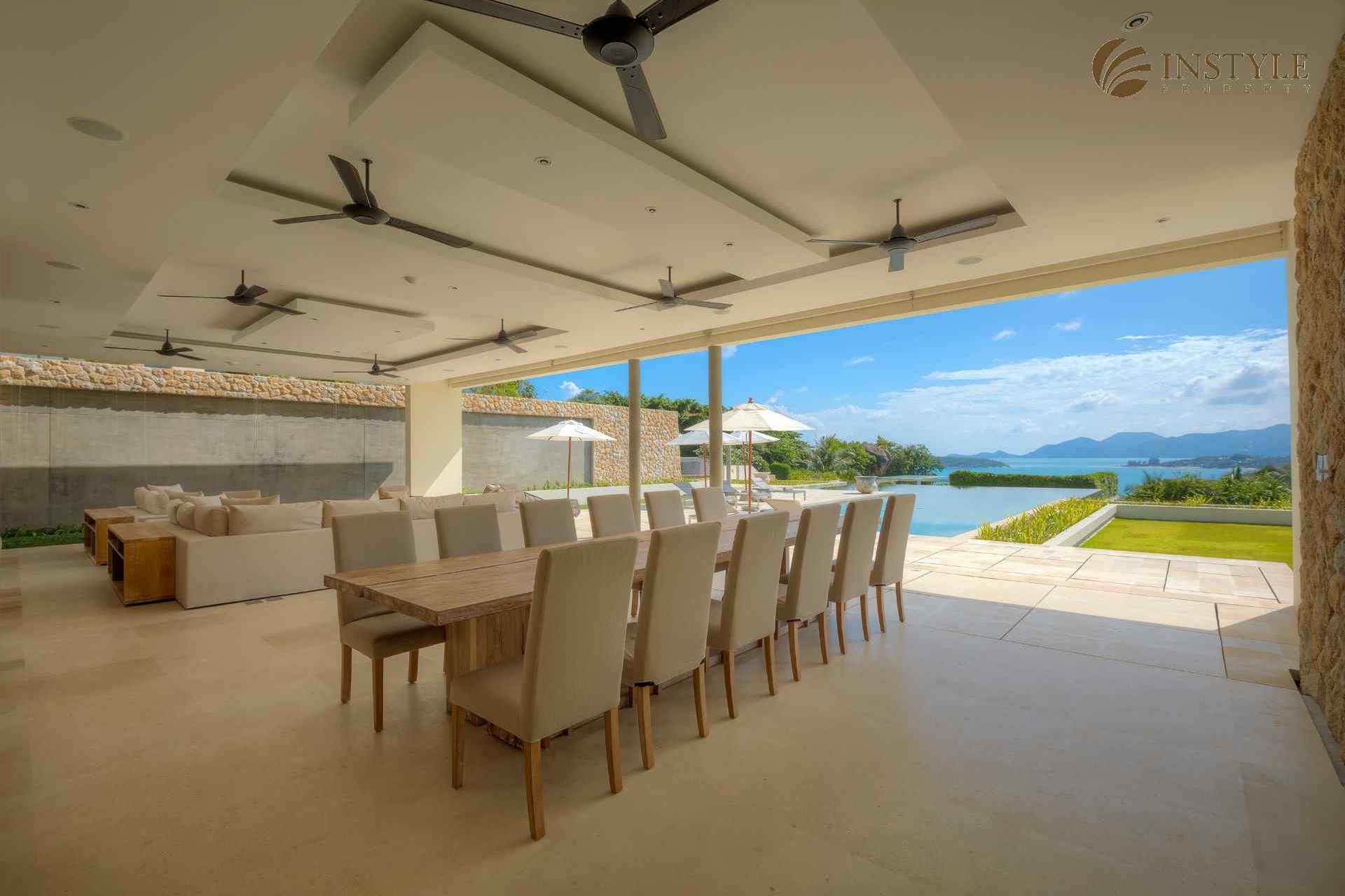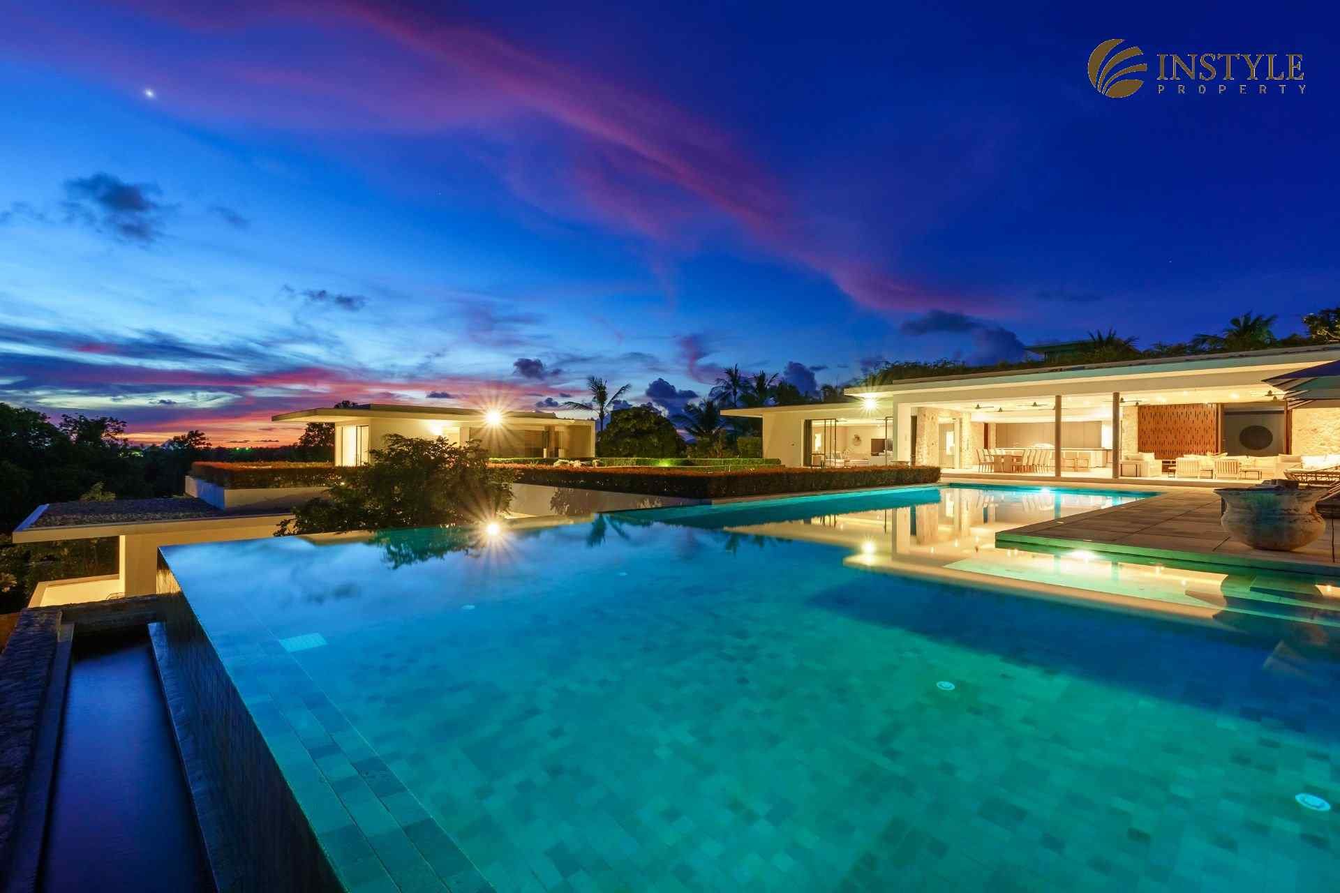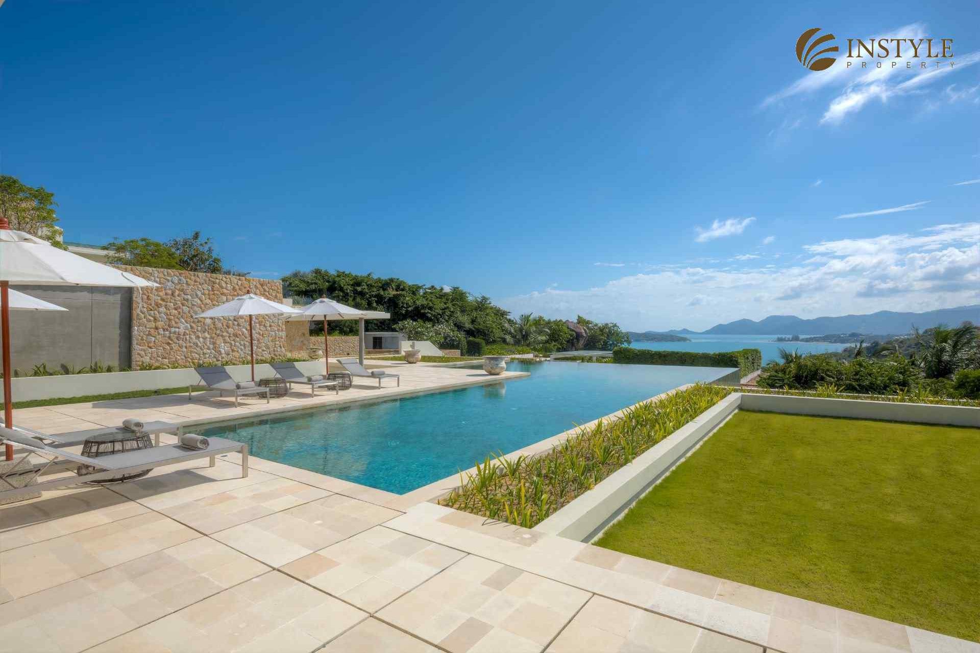 This ocean front villa with a coastal location in Plai Laem comes in a stunning world-class design with a size of 2,678 SQ.M. The property has six bedrooms and seven bathrooms and is situated over two floors. It also includes a private gym, cinema, family room and an infinity pool. Located in Choeng Mon, this building is in an excellent condition with a standing of high luxury.